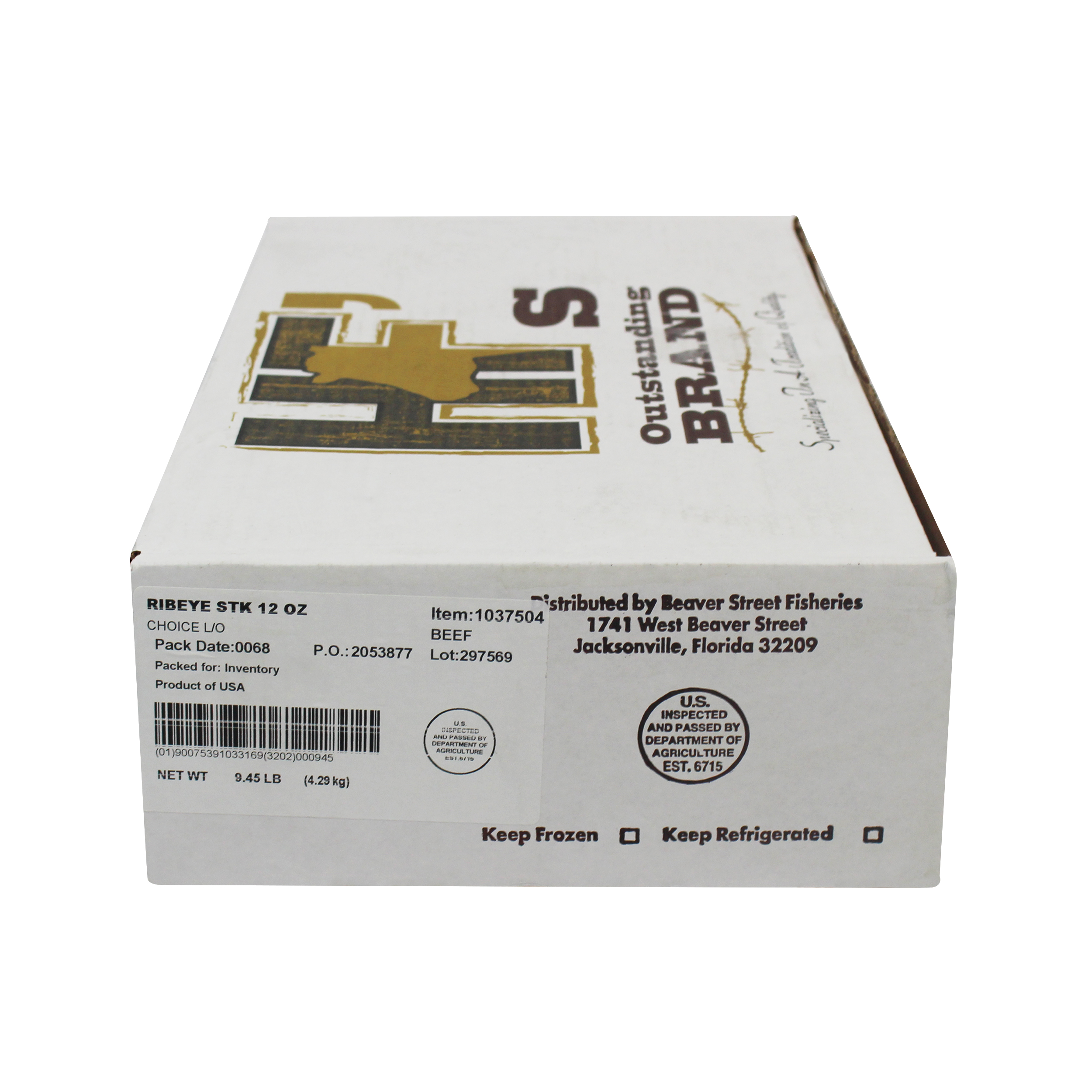 HF's Outstanding Lip-on Ribeye Steak is cut from beef that has been raised and processed in the USA. Our boneless ribeye steak is rich, tender, juicy and full-flavored, with generous marbling throughout. Each steak is individually vacuum packaged for optimal freshness and convenience.