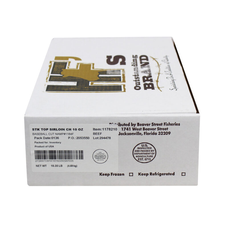 BEEF TOP SIRLOIN STEAK BASEBALL 10 OUNCE CHOICE