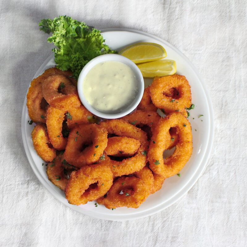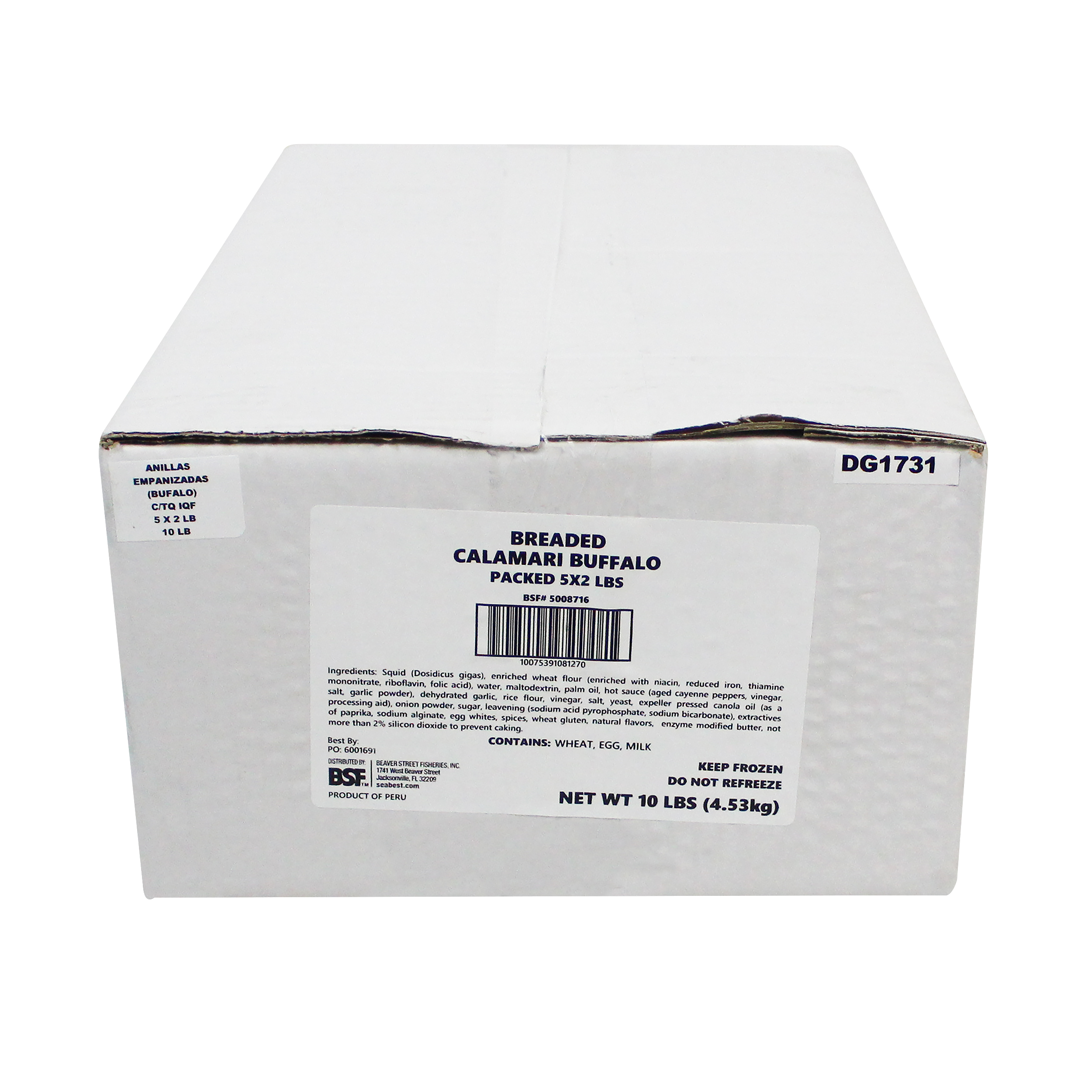 Sea Best Buffalo Breaded Calamari Rings are produced from wild caught squid harvested from the waters of Peru. Squid has a mild flavor and a firm texture, making it ideal for any type of breaded coating. Each calamari ring is lightly coated in a buffalo seasoned Panko bread crumb. These calamari rings cook up crispy on the outside while remaining tender on the inside and