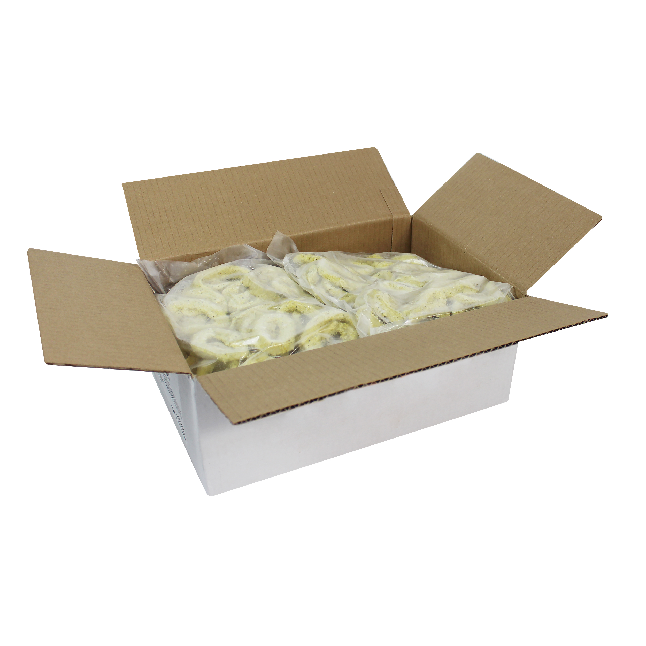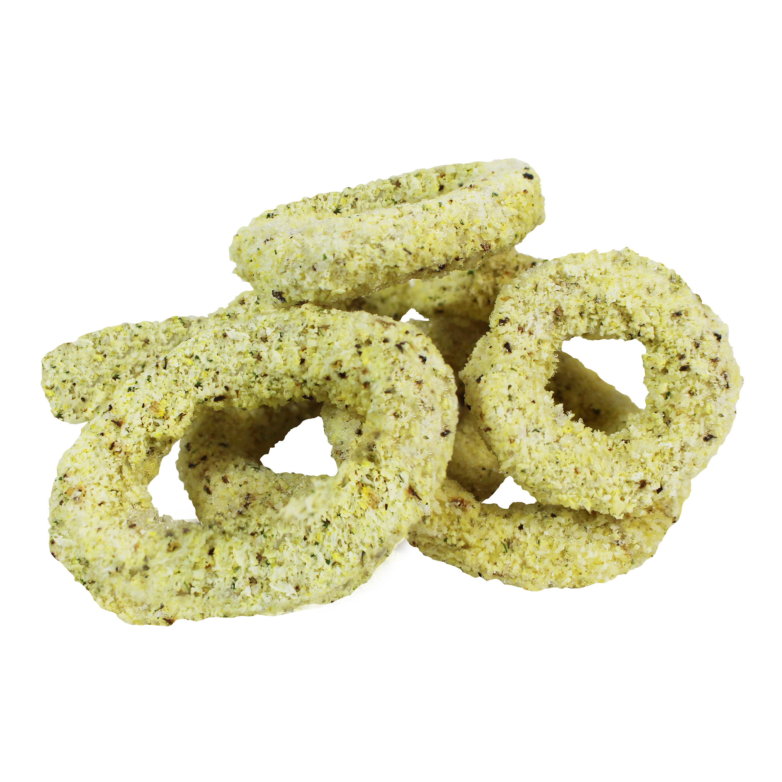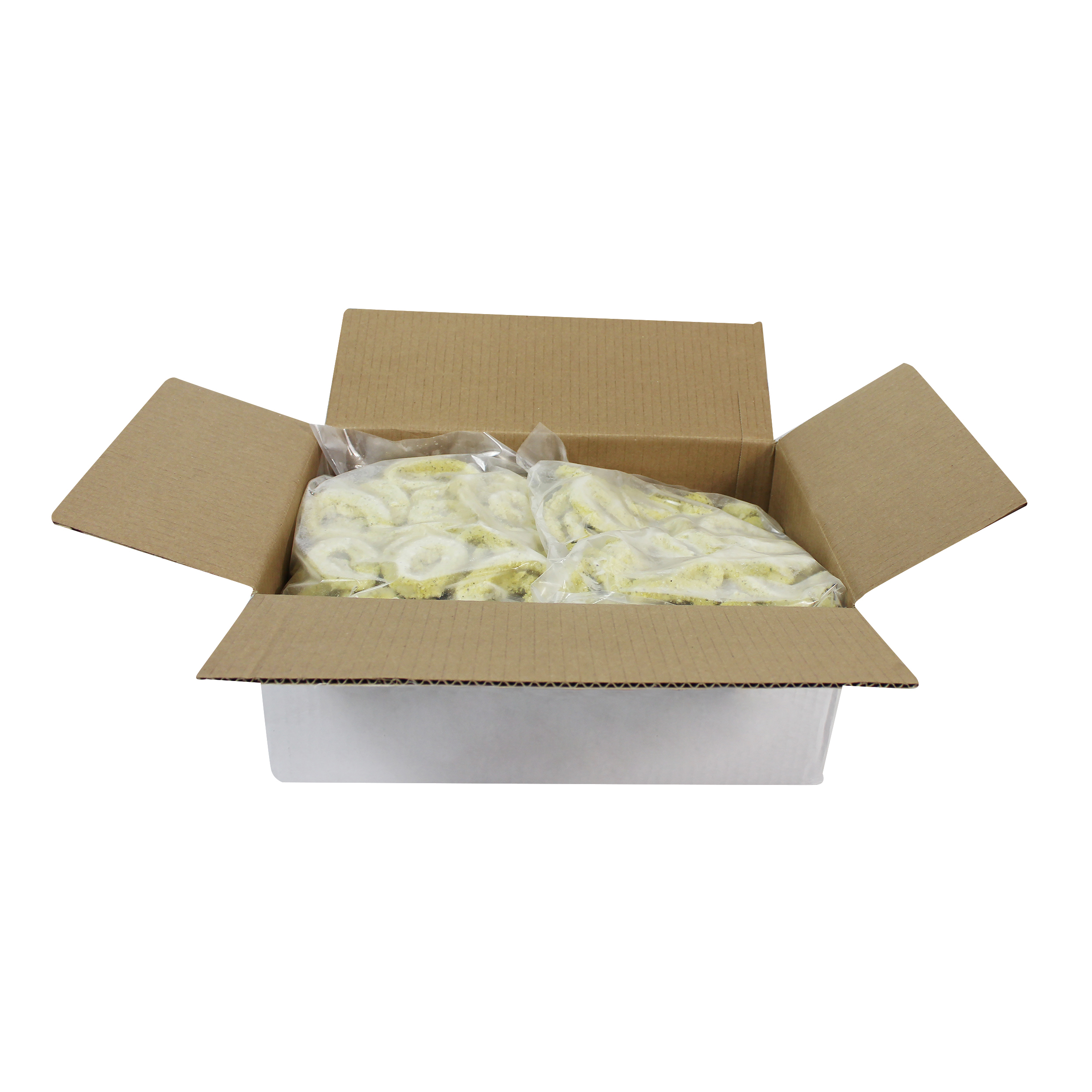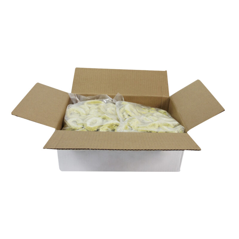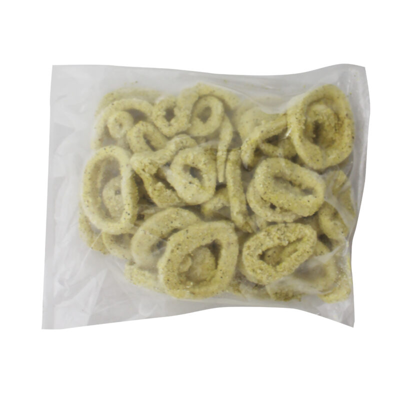 bread crumb. These calamari rings cook up crispy on the outside while remaining tender on the inside and have a delicious, savory flavor. The breaded calamari rings are individually quick frozen and poly bagged for optimal freshness and convenience.