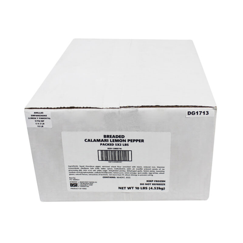 Sea Best Lemon Pepper Breaded Calamari Rings are produced from wild caught squid harvested from the waters of Peru. Squid has a mild flavor and a firm texture, making it ideal for any type of breaded coating. Each calamari ring is lightly coated in a lemon pepper seasoned Panko