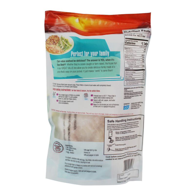 Sea Best farm-raised Catfish fillets are skinless, boneless and known for their mild flavor. Its meat has a medium, flaky texture that remains moist and tender during cooking. Each fillet is individually vacuum packed and packaged in a resealable bag for optimal freshness and convenience.