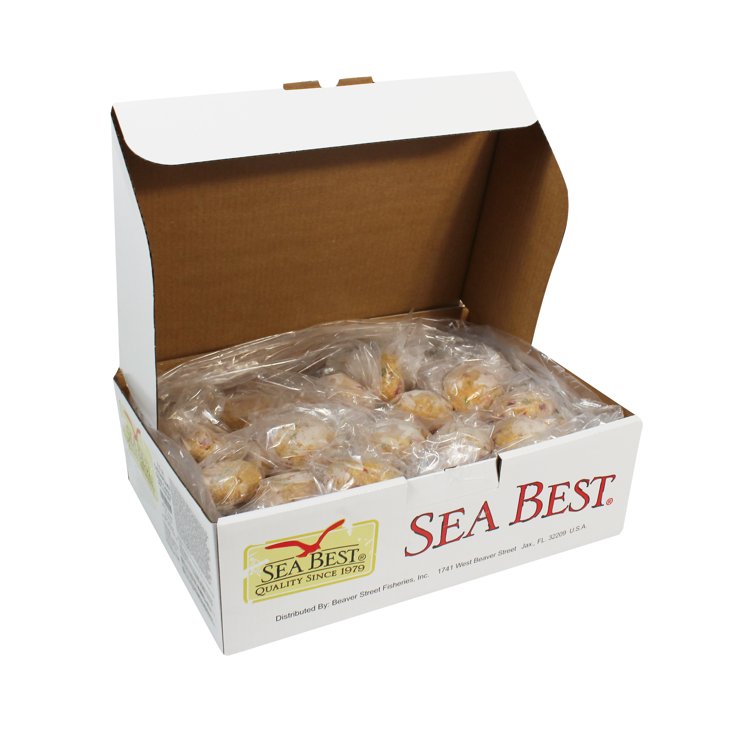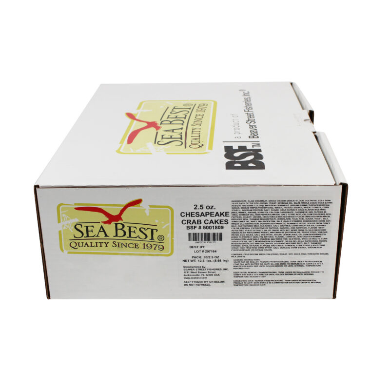 Sea Best Chesapeake Crab Cakes are handmade in our own kitchen and specially prepared with premium claw crabmeat, vegetables and spices. Each cake is consistently sized for ease in back of the house, then individually quick frozen and poly bagged for optimal freshness and convenience.