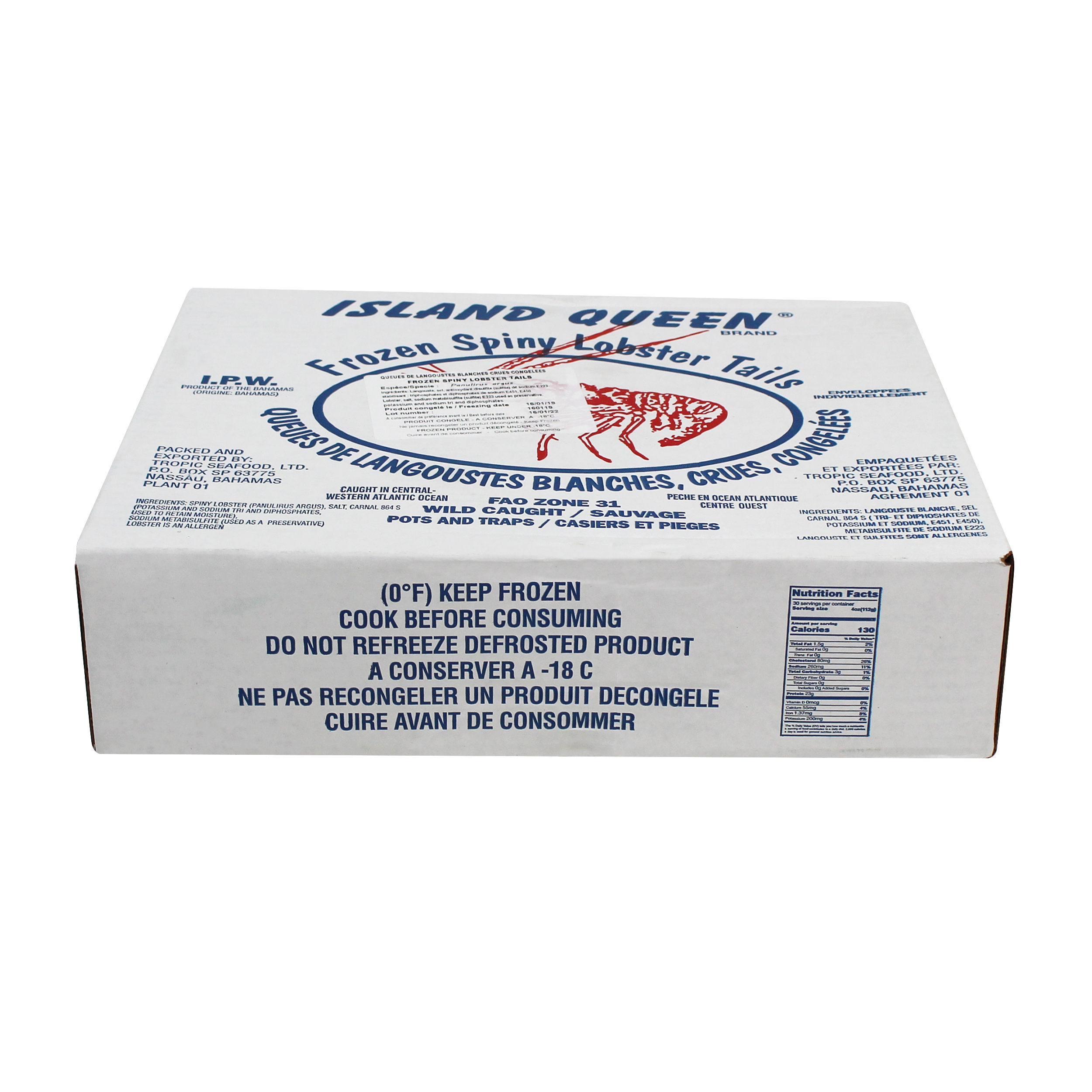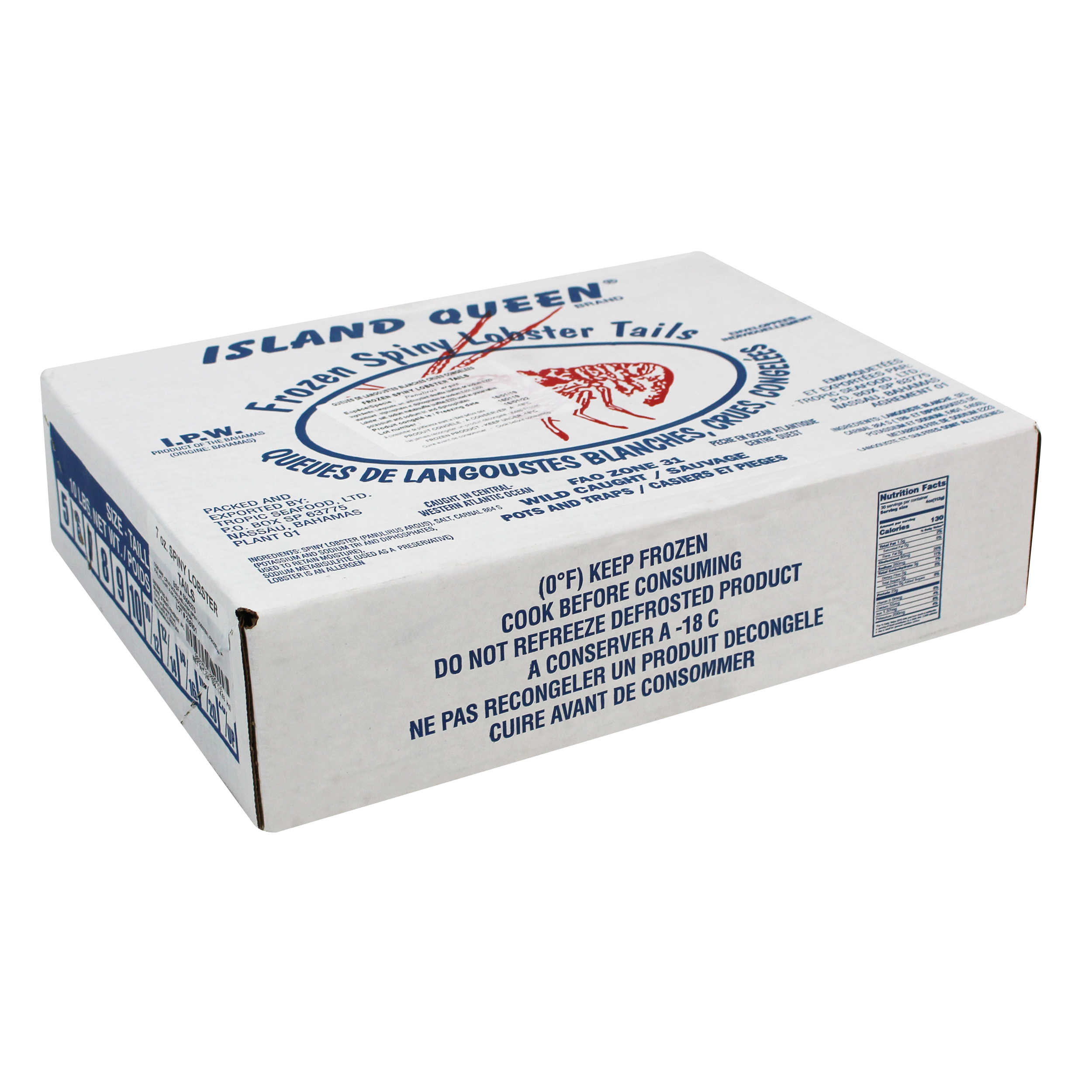 Island Queen Warm Water Lobster Tails, also known as spiny lobster, are wild caught in the pristine waters of Nassau, in the only MSC Certified fishery of the Bahamas. These #1 grade tails are 100% net weight guaranteed, have no cracks, holes, or blemishes, and have all white bellies. Bahamian lobster tails are filled with succulent white meat that is firm with a mild and sweet flavor. Each tail is individually quick frozen and poly bagged for optimum freshness and convenience.
