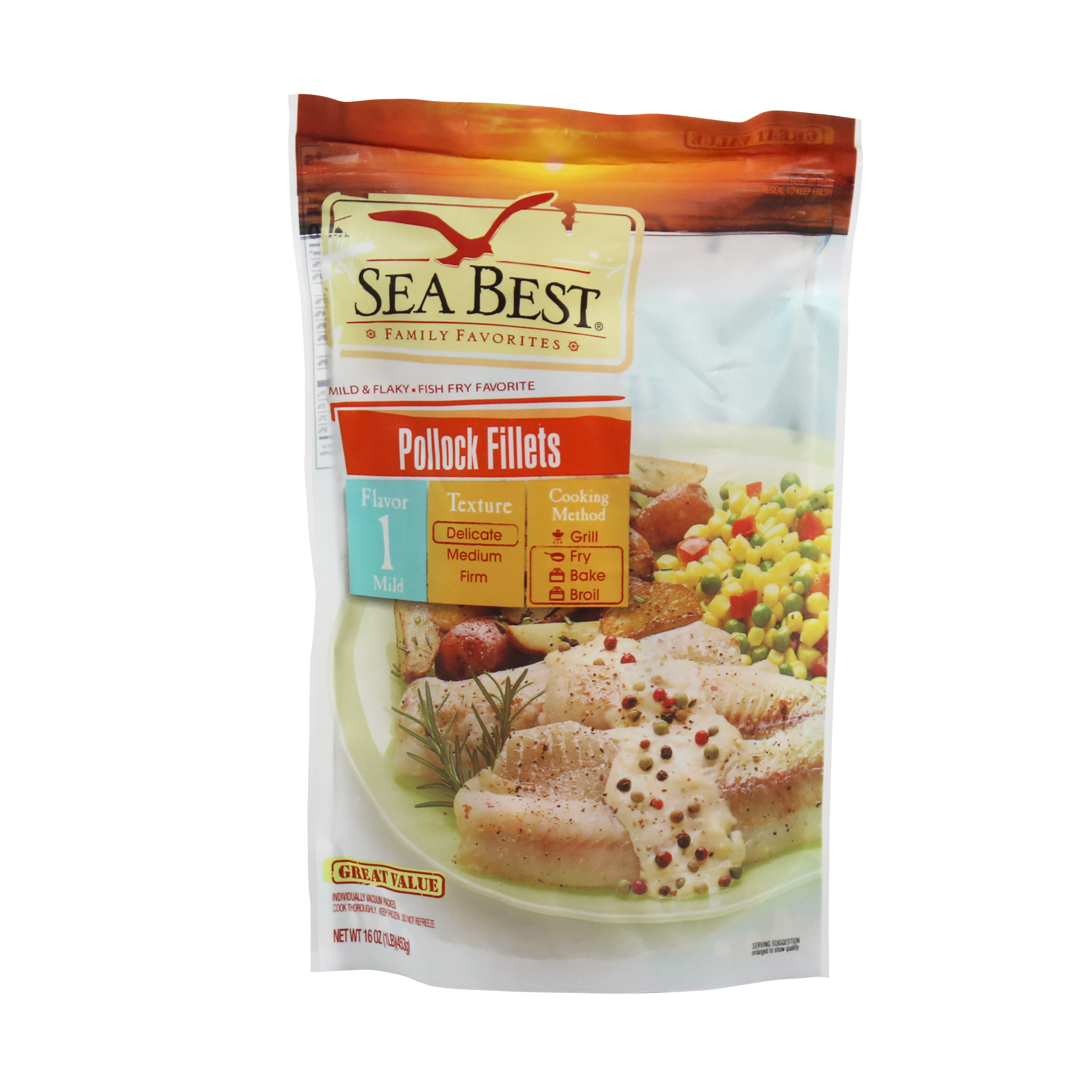 Sea Best wild caught pollock fillets are popular for their mild flavor and a medium, flaky texture. The neutral taste of pollock allows accompanying flavors to infuse the flaky meat, and it adapts to the seasoning and sauces it’s cooked in. Each fillet is individually vacuum packaged for optimal freshness and convenience.