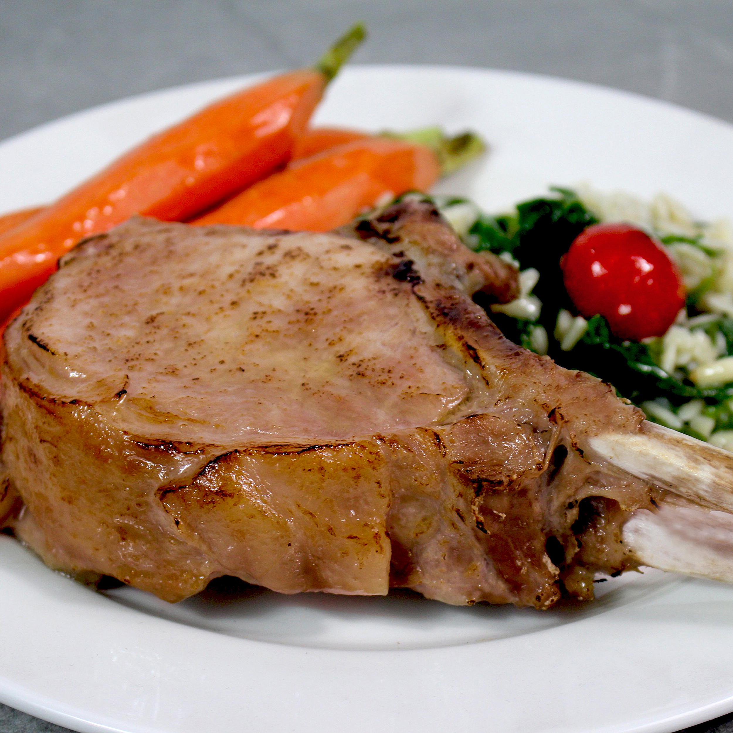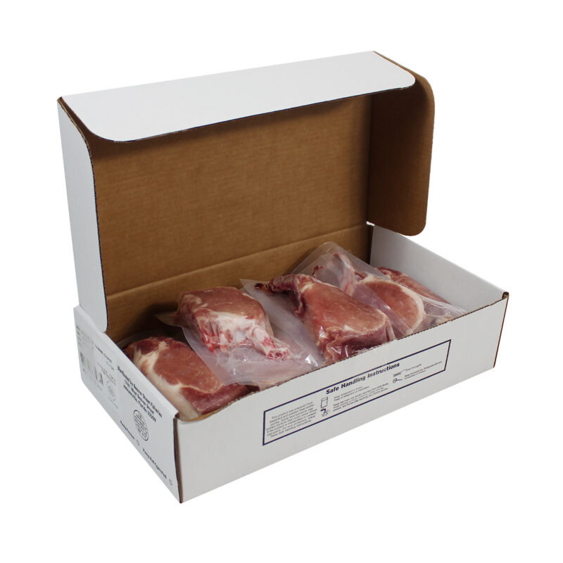 HF's Frenched Bone-In Pork Chop has a rich flavor and a firm, yet tender, texture. Leaving the bone in this cut of pork makes it extremely moist and flavorful. This pork chop provides an impressive center plate presentation for a hearty main entrée. Not only is it an excellent source of protein, pork also provides several vitamins and minerals that are important for overall health. Pork is high in thiamin, selenium, niacin, vitamin B6, phosphorus, riboflavin, zinc and potassium. Each frenched bone-in pork chop is individually vacuum packed for freshness and convenience.