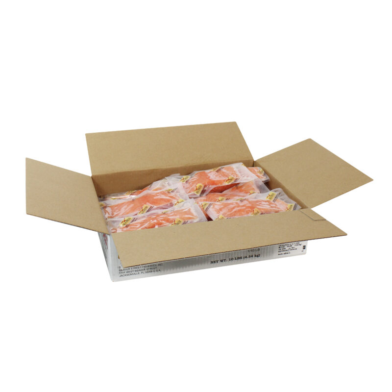 Our Norwegian Salmon Portions are produced from farm-raised Atlantic salmon that are processed in a BAP certified plant. These skinless, boneless salmon portions are deep skinned to minimize the blood and fat lines. Salmon has a rich flavor and firm, tender texture with large flakes of meat that stay moist during cooking. This popular healthy source of protein is a rich source of omega-3 fatty acids. Each salmon portion is individually vacuum packed for freshness and convenience.