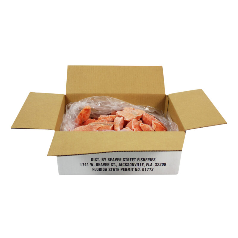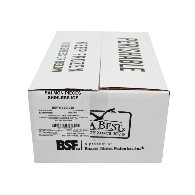 Sea Best farm raised Atlantic salmon pieces are a by product of our popular salmon fillets, harvested off the coast of Chile. Each piece comes from the collar and tail of our fresh salmon side and is hand cut into smaller pieces. They are then individually quick frozen and glazed for optimal freshness, and bulk packaged for convenience.