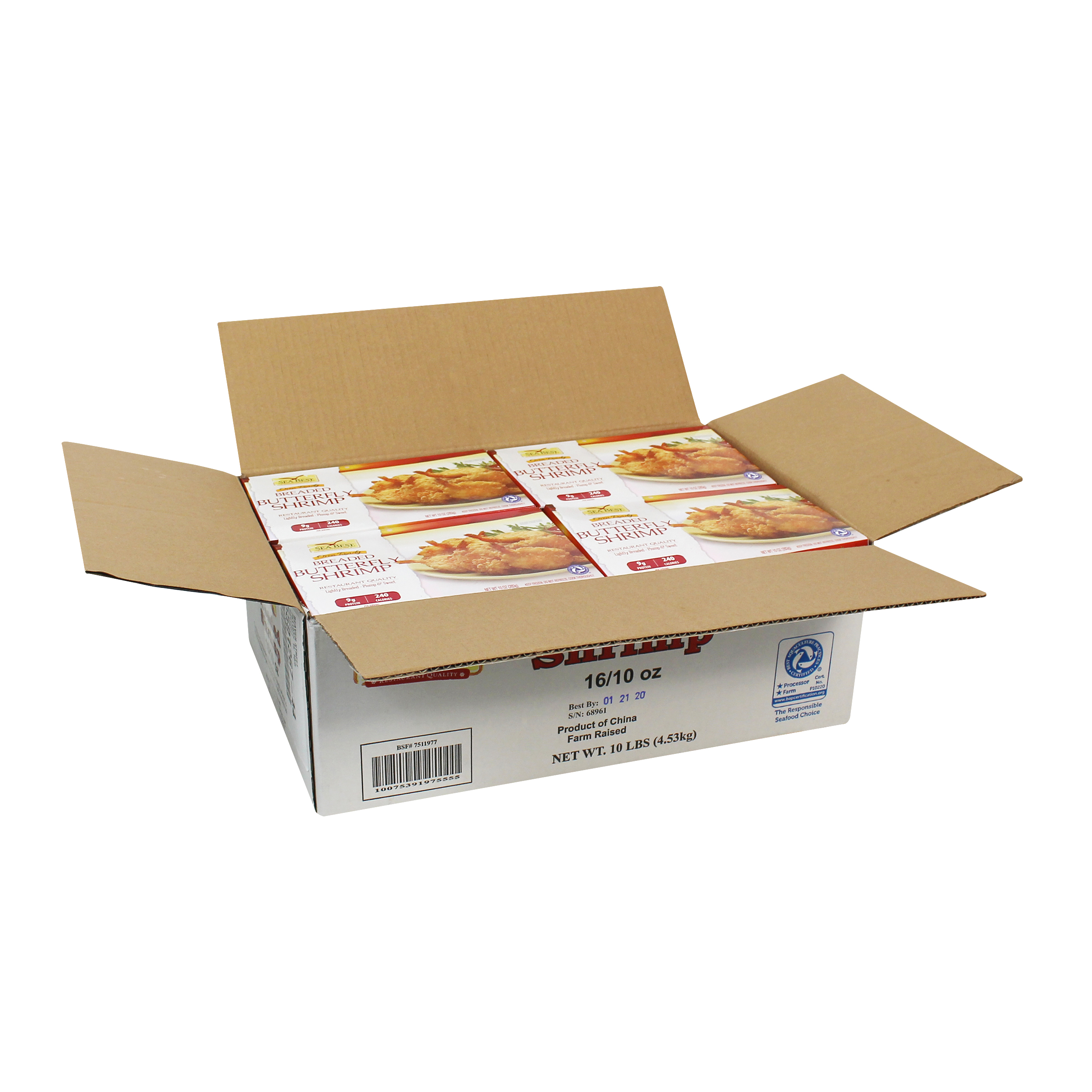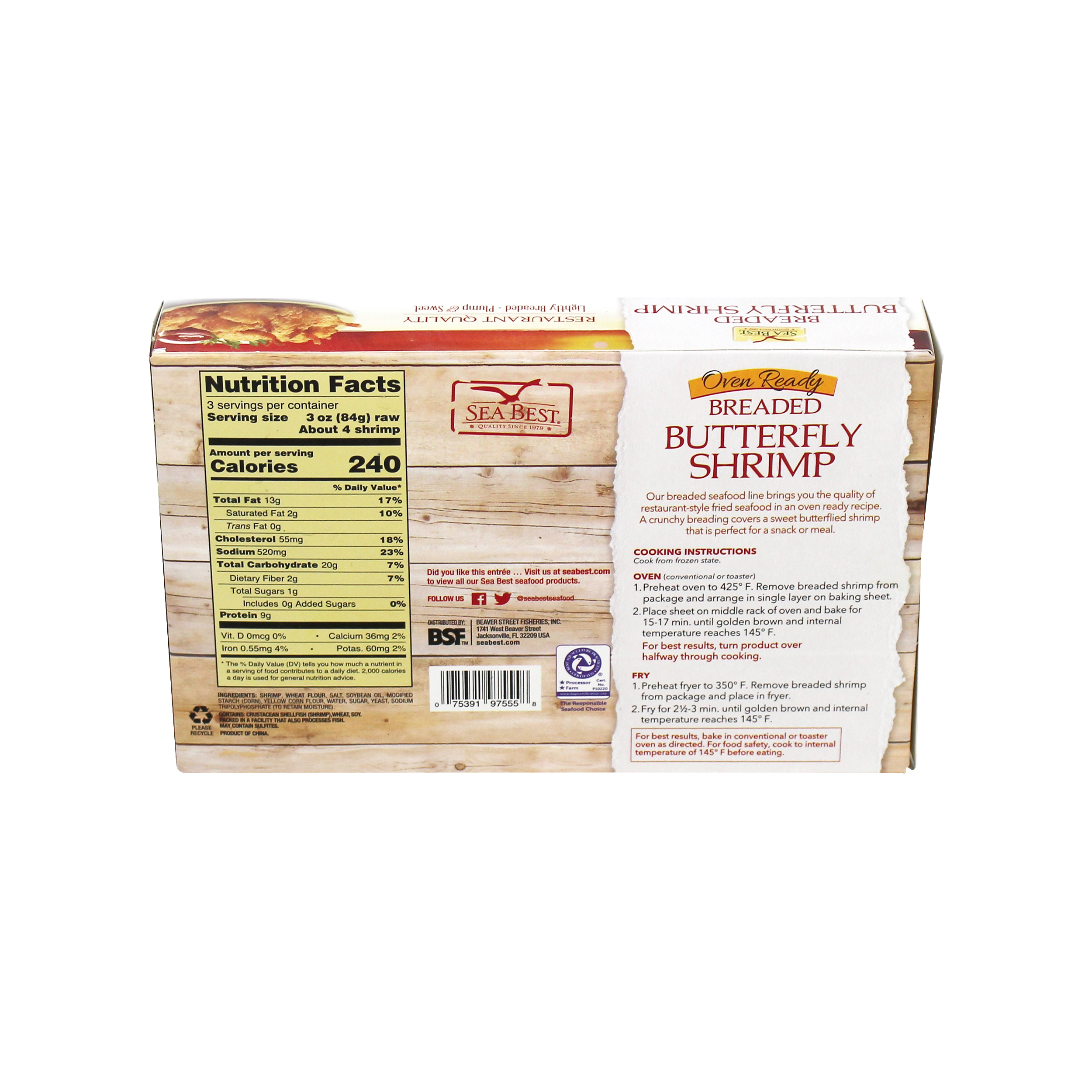 Sea Best Breaded Butterfly Shrimp are farm-raised and processed in BAP Certified plants. These lightly breaded, plump and sweet butterflied shrimp bake to a crisp, golden brown. Our breaded butterfly shrimp are oven ready delivering and easy to prepare restaurant-quality shrimp. Each breaded shrimp is individually quick frozen and poly bagged for optimal freshness and convenience.