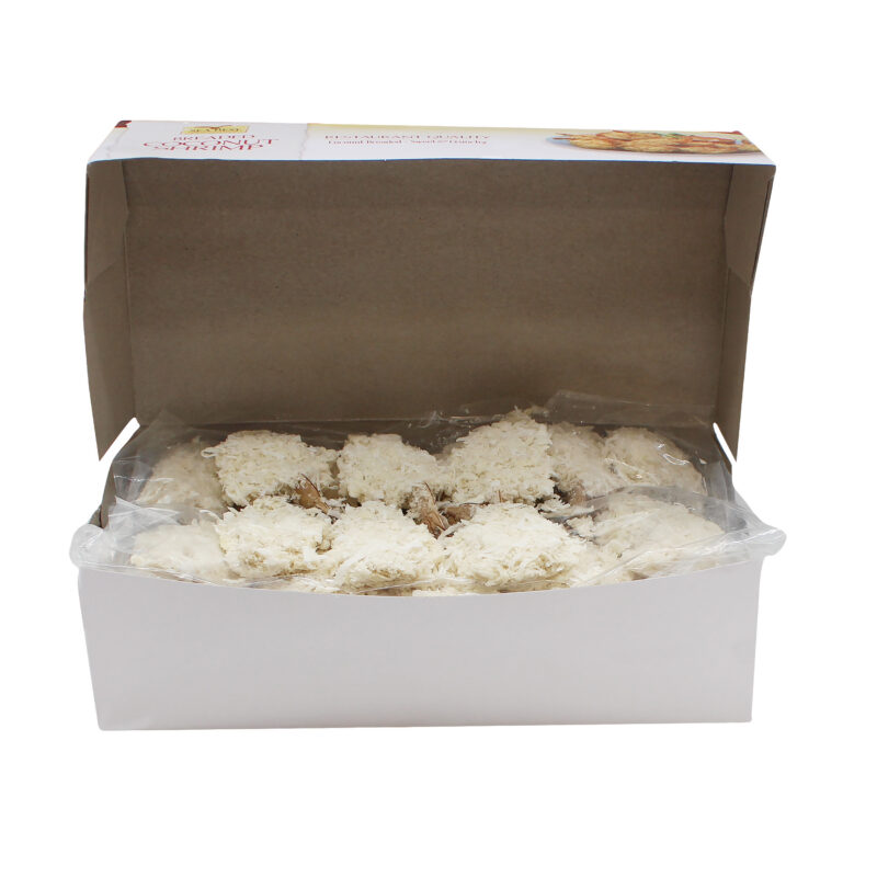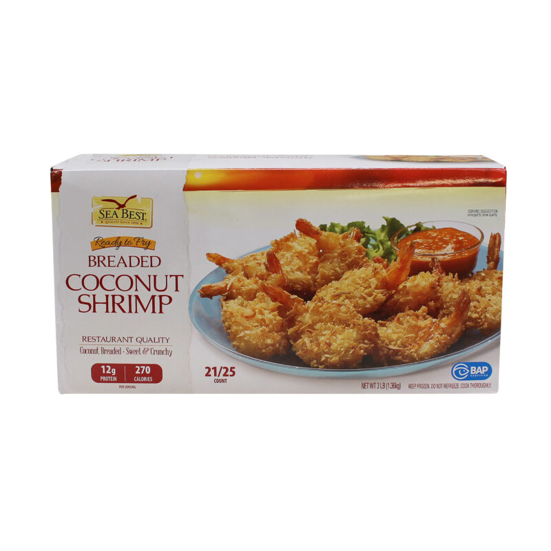Sea Best Breaded Butterfly Coconut Shrimp are farm-raised and processed in a BAP certified plant. These lightly breaded, plump and sweet butterflied shrimp fry to a crisp, golden brown. Our breaded butterfly shrimp are ready-to-fry, delivering an easy to prepare restaurant-quality shrimp. Each breaded shrimp is individually quick frozen and poly bagged for optimal freshness and convenience.