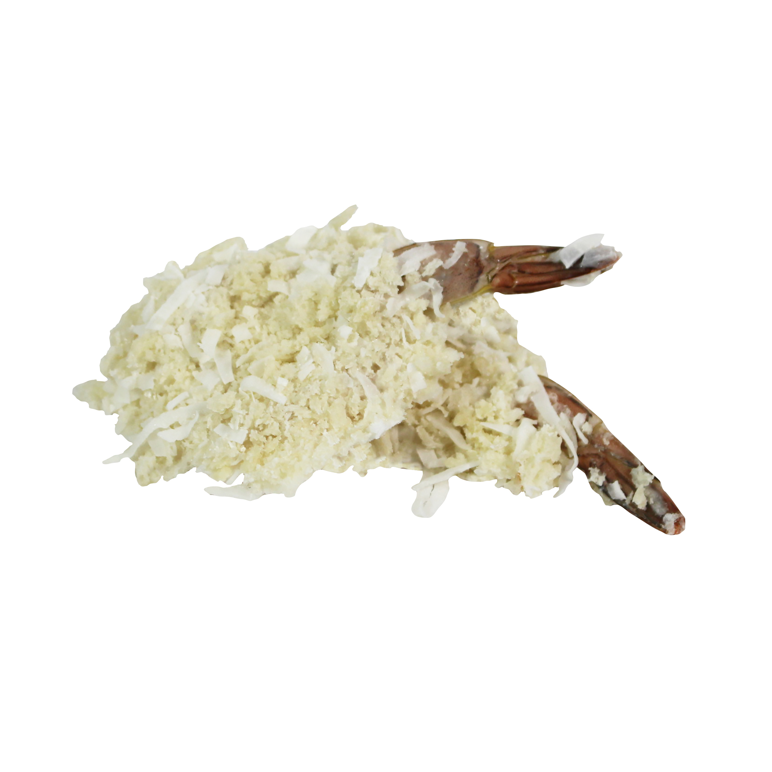 INGREDIENT STATEMENT Shrimp, sugar with tapioca starch, modified starch (corn), wheat flour, flavor artificial (coconut), salt, vegetable shortening (palm (non hydrogenated)), guar gum, dextrose, xanthan gum, spice (white pepper), raising agents (sodium acid pyrophosphate, sodium bicarbonate, monocalcium phosphate), coconut flake, sugar, yeast, soy flour, sodium tripolyphosphate(to retain moisture)