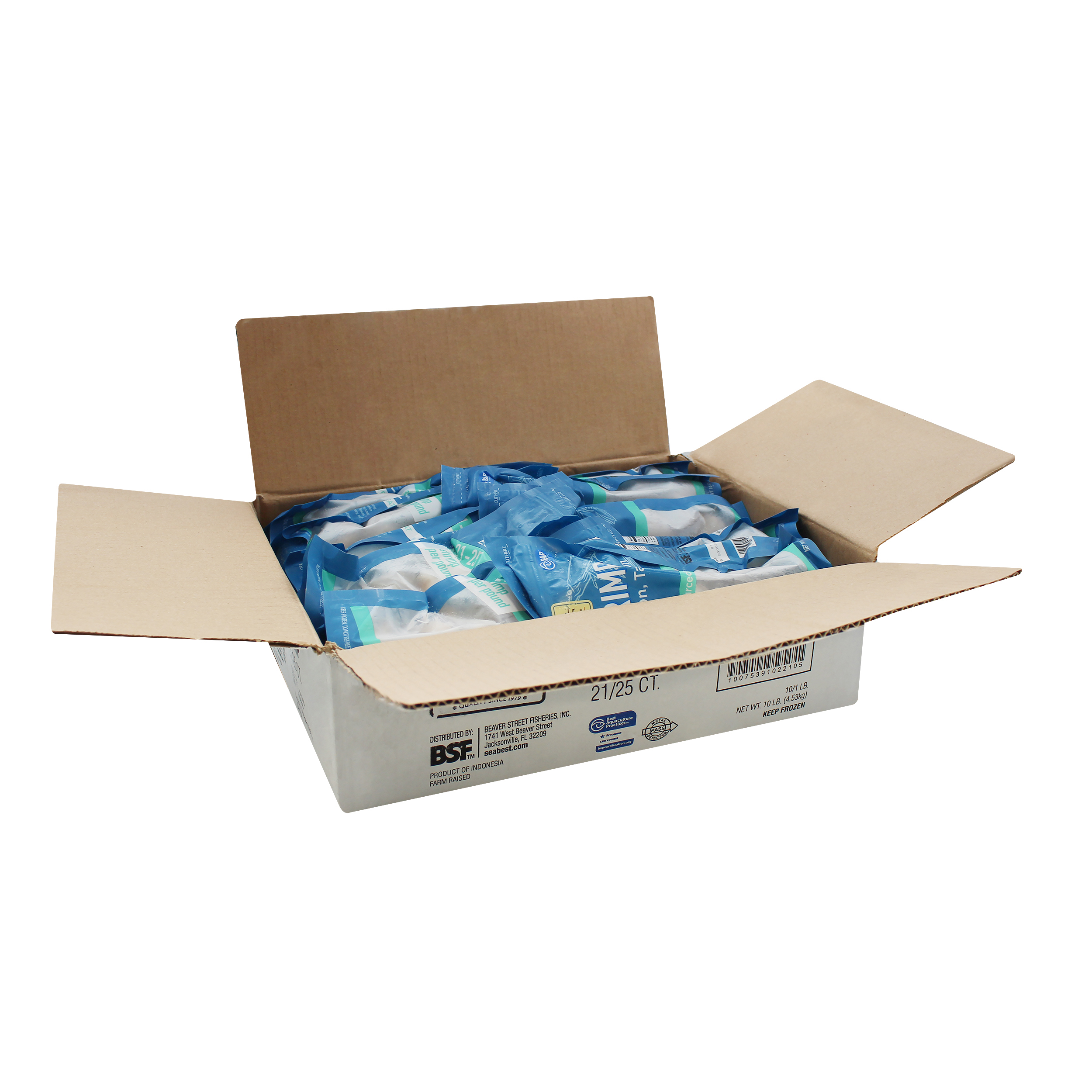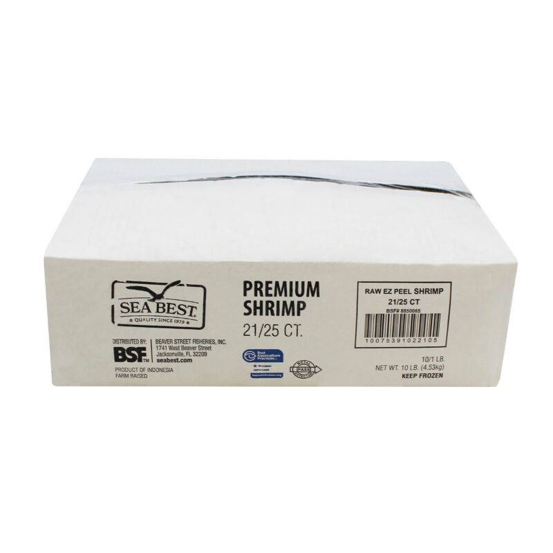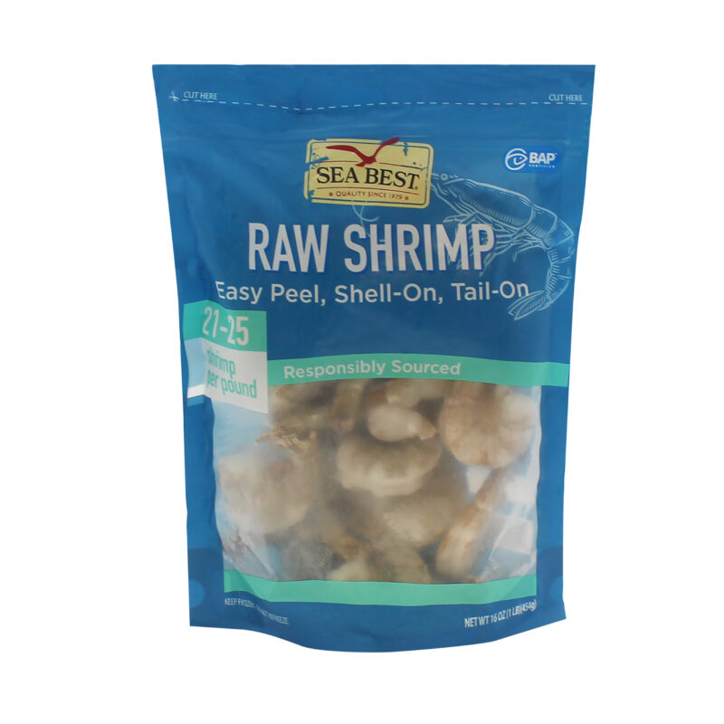 Sea Best raw, easy peel, shell-on shrimp are farm-raised and processed in a BAP Certified plant. These shrimp have a mild flavor and a medium, tender texture. Pre-split shells make them easy to peel either before cooking or after. Each shrimp is individually quick frozen and packaged in a resealable bag for for optimal freshness.