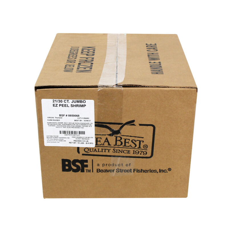 Sea Best raw, easy peel, shell-on shrimp are farm-raised and processed in a BAP Certified plant. These shrimp have a mild flavor and a medium, tender texture. Pre-split shells make them easy to peel either before cooking or after. Each shrimp is individually quick frozen and poly bagged for optimal freshness.