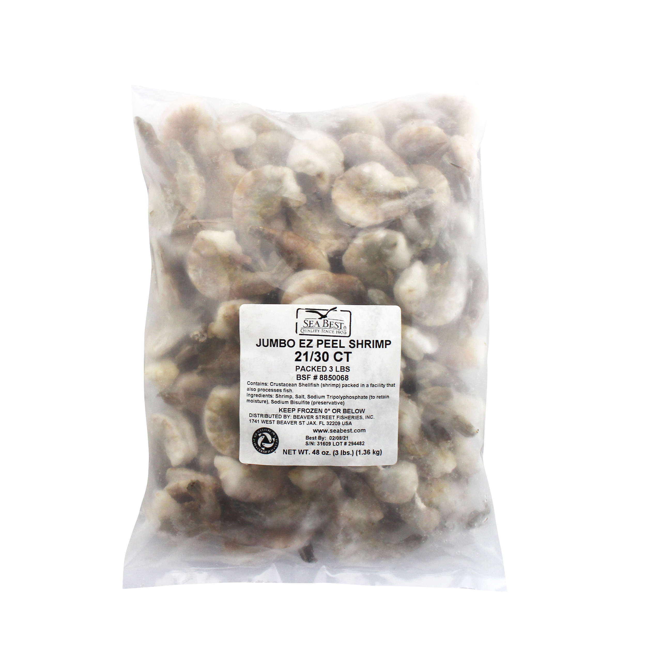 Sea Best raw, easy peel, shell-on shrimp are farm-raised and processed in a BAP Certified plant. These shrimp have a mild flavor and a medium, tender texture. Pre-split shells make them easy to peel either before cooking or after. Each shrimp is individually quick frozen and poly bagged for optimal freshness.