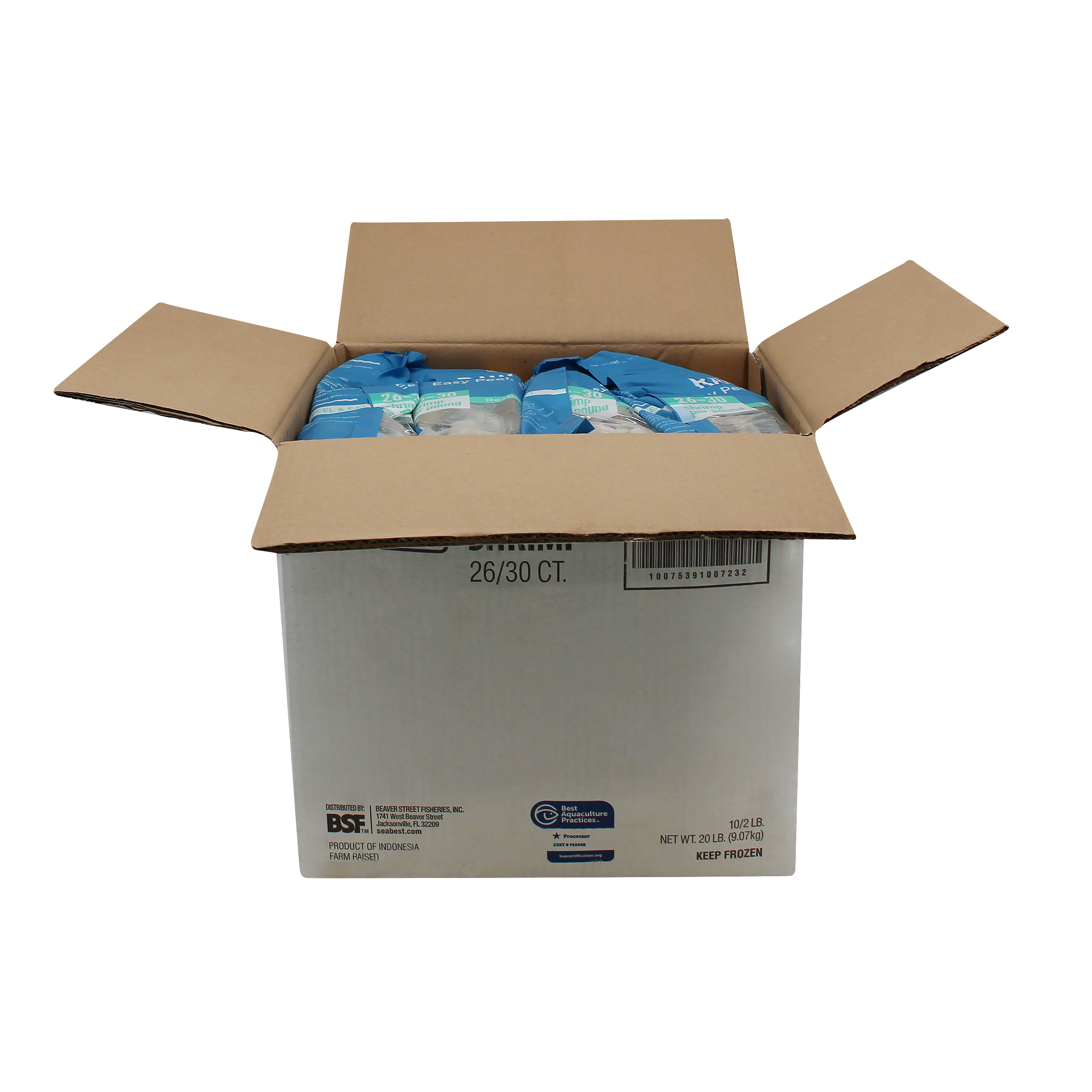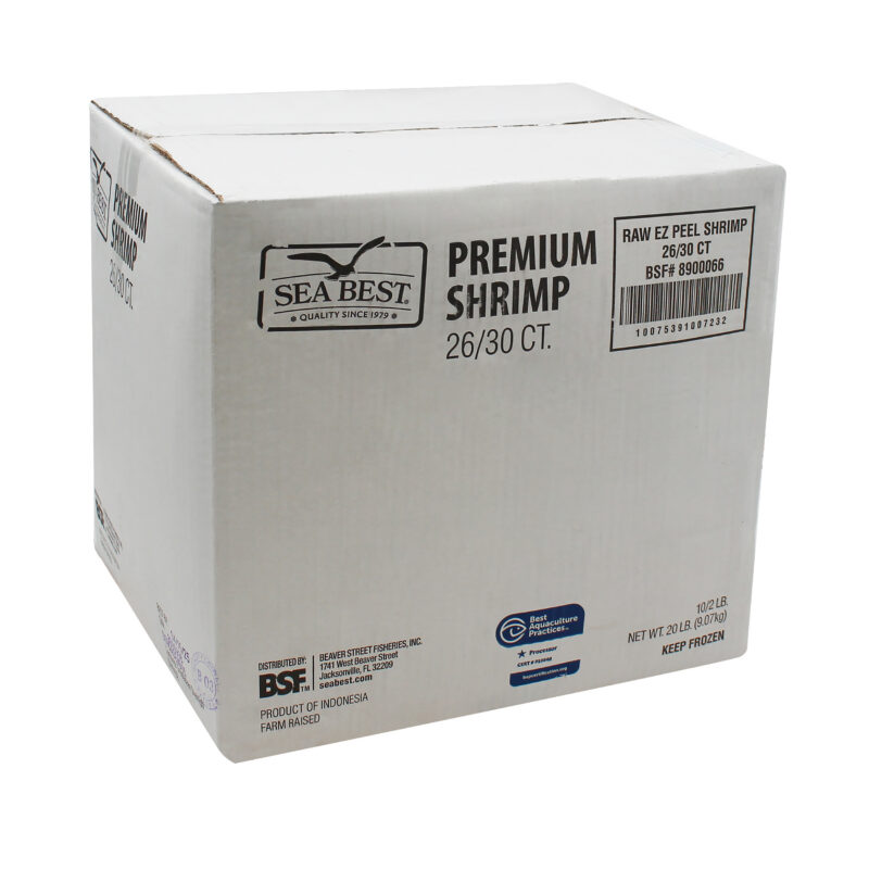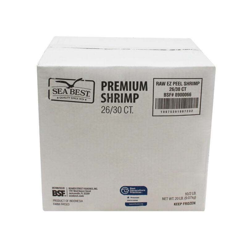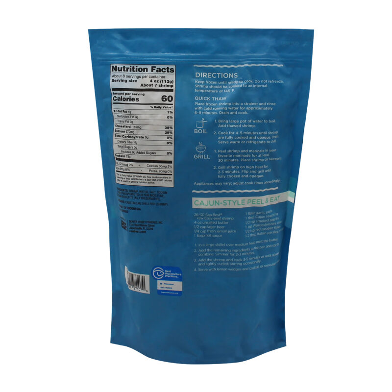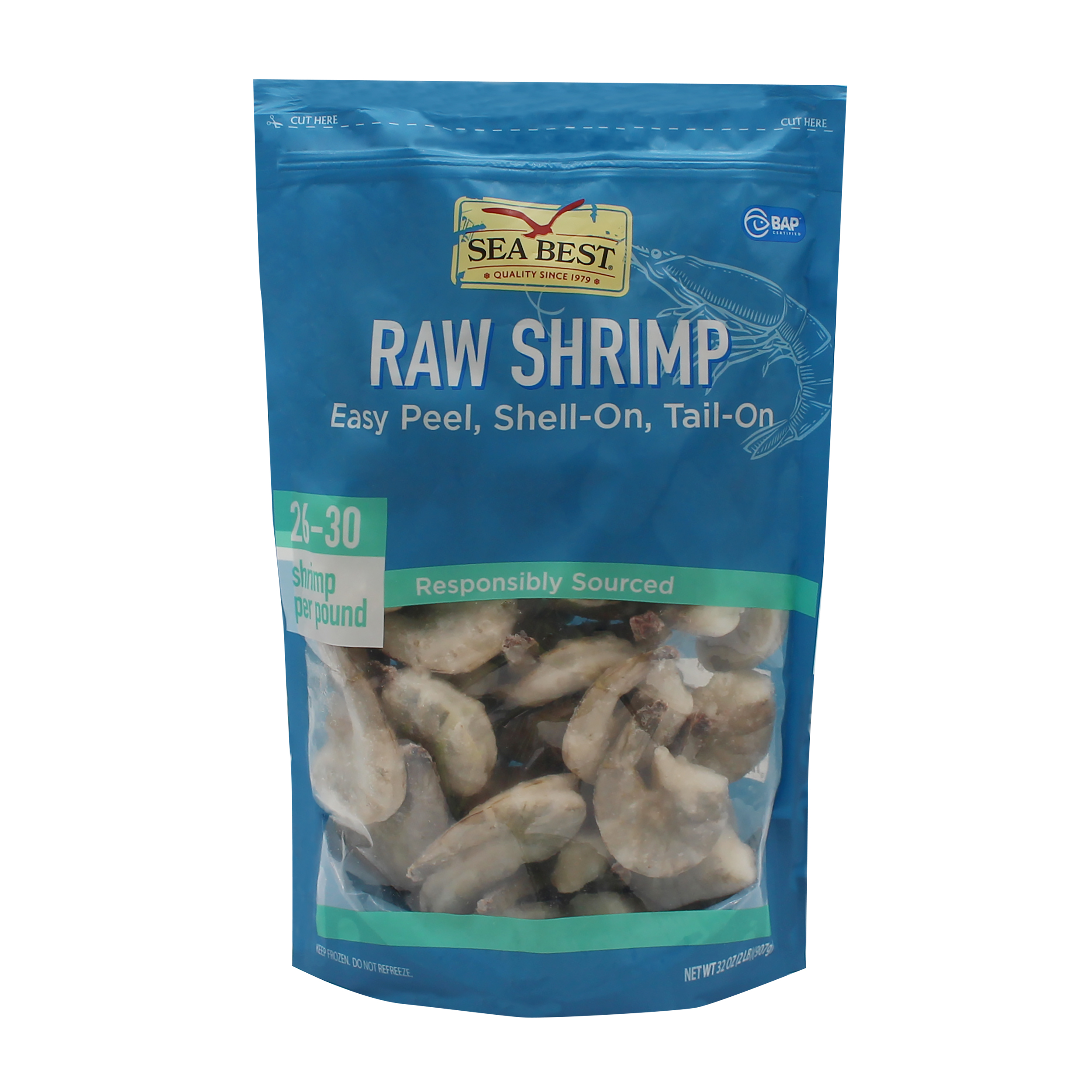 Sea Best raw, easy peel, shell-on shrimp are farm-raised and processed in a BAP Certified plant. These shrimp have a mild flavor and a medium, tender texture. Pre-split shells make them easy to peel either before cooking or after. Each shrimp is individually quick frozen and packaged in a resealable bag for optimal freshness.