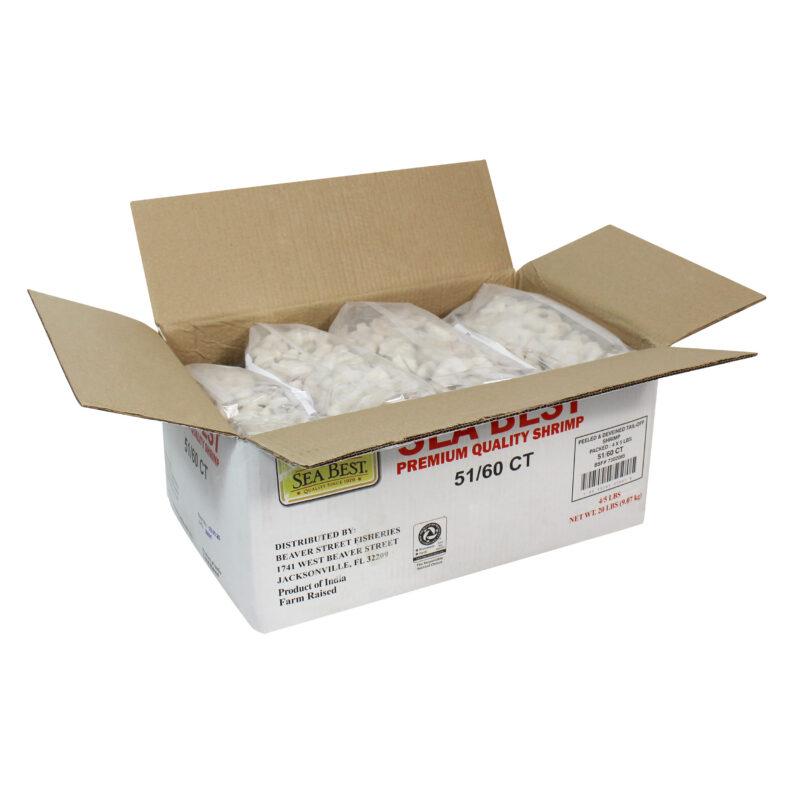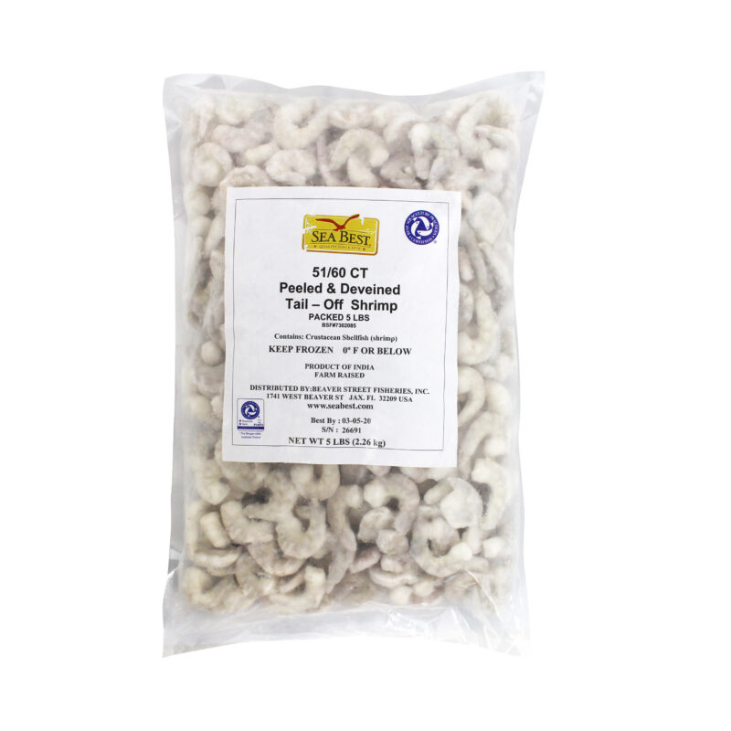 Sea Best raw, P&D, tail-off shrimp are farm-raised and processed in a BAP Certified plant. These peeled and deveined, tail-off shrimp have a mild flavor and a medium, tender texture. The shrimp are individually quick frozen for optimal freshness and packaged in a resealable bag for convenience.