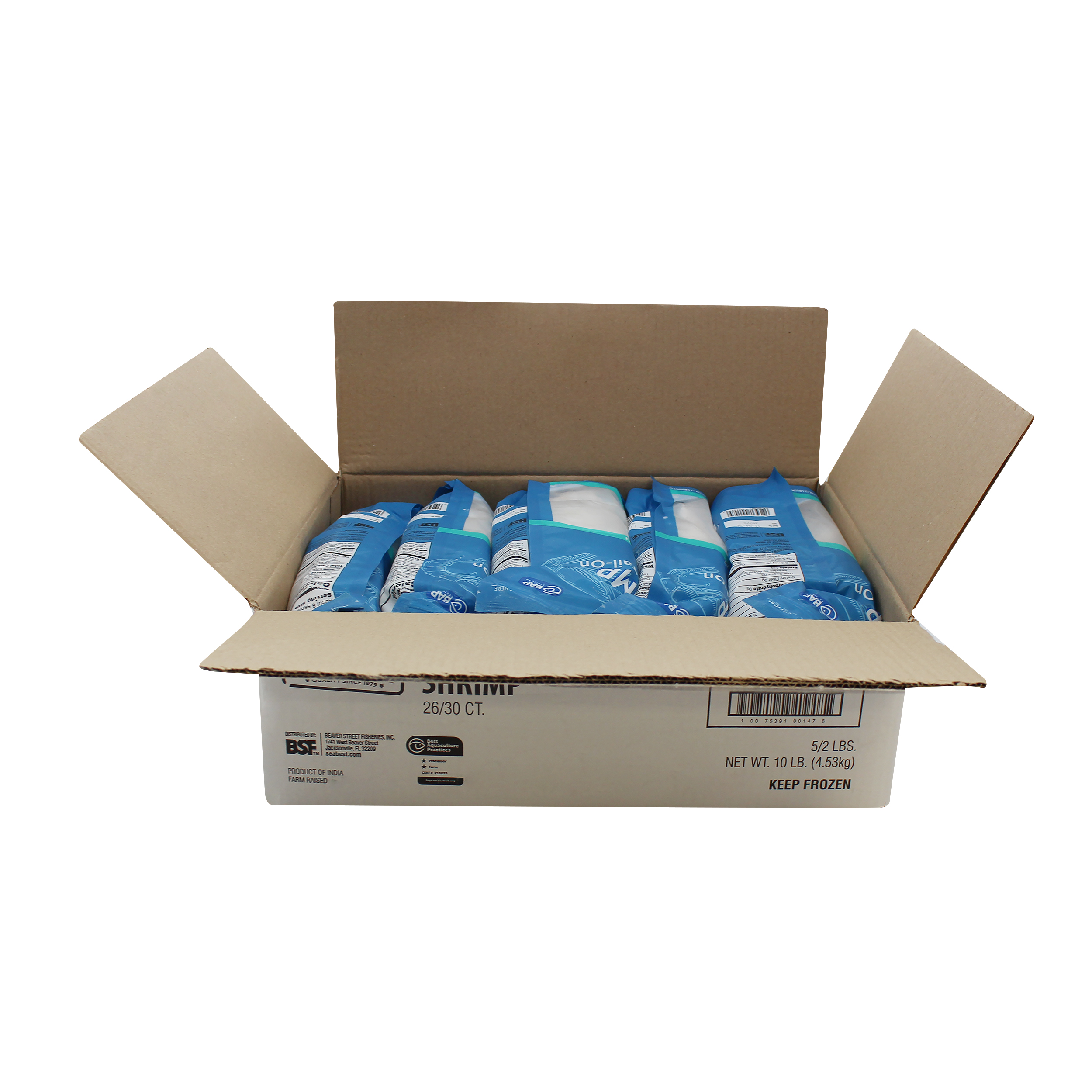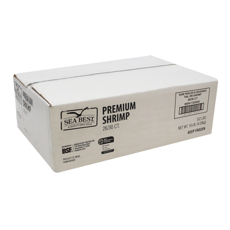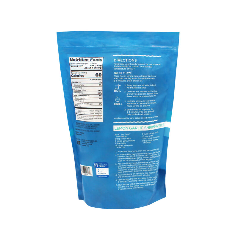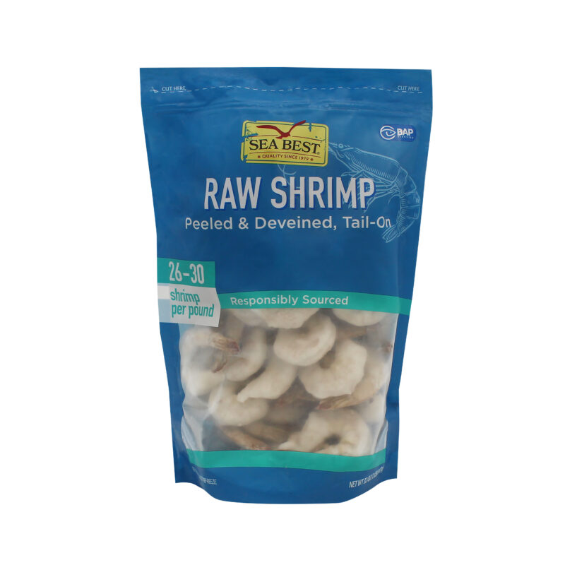Sea Best raw shrimp are farm-raised and processed in a BAP Certified plant. These peeled and deveined, tail-on shrimp have a mild flavor and a medium, tender texture. The shrimp are individually quick frozen for optimal freshness and packaged in a resealable bag for convenience.