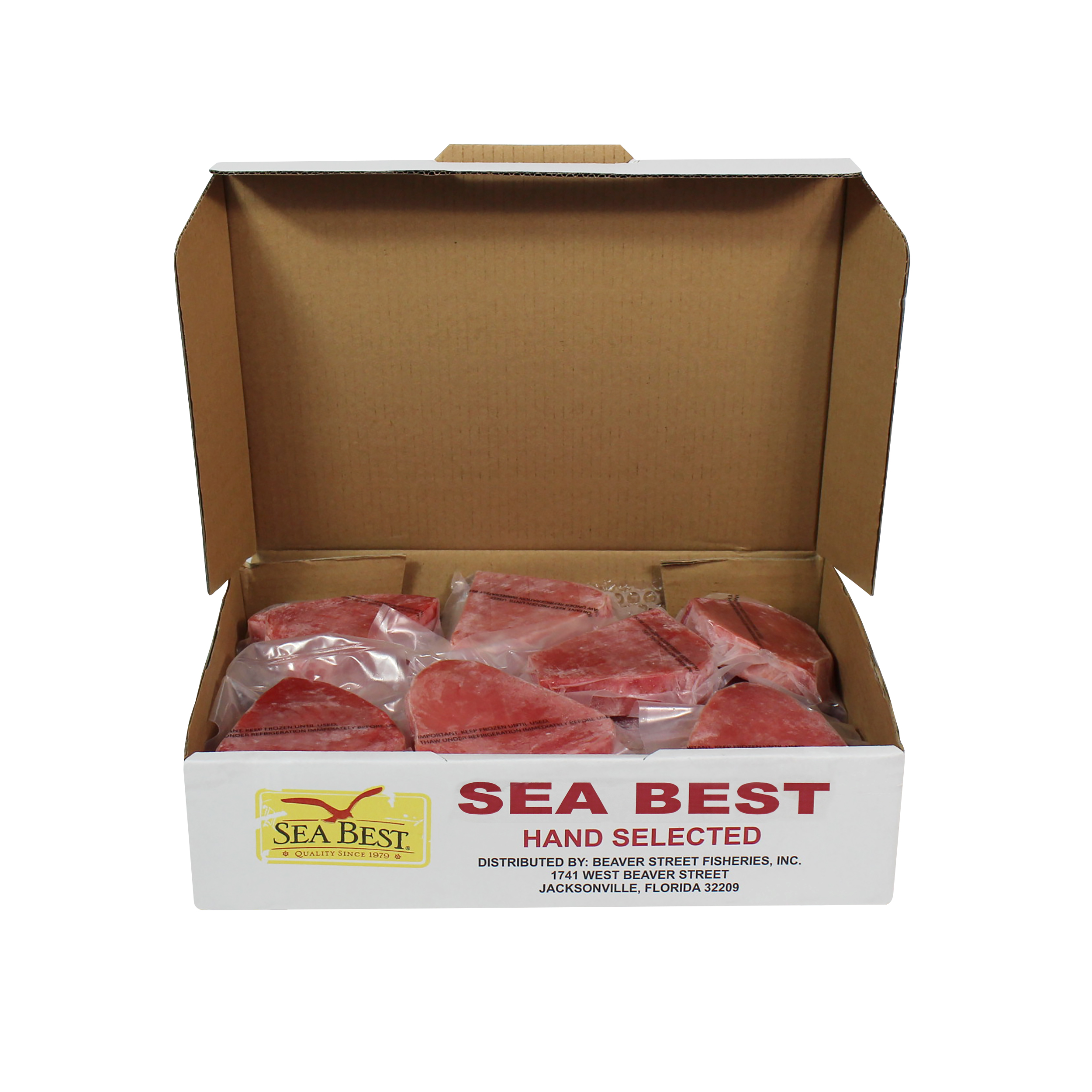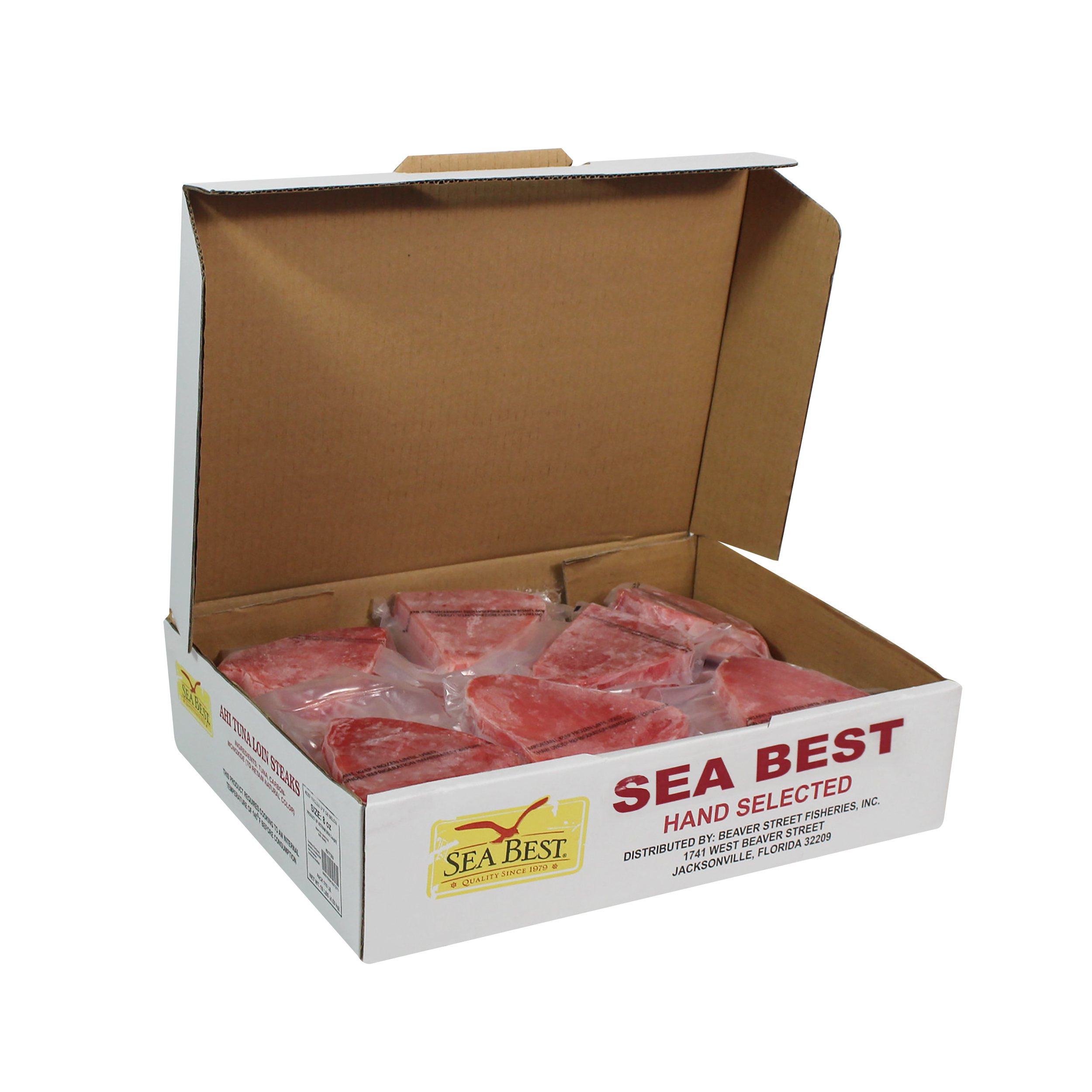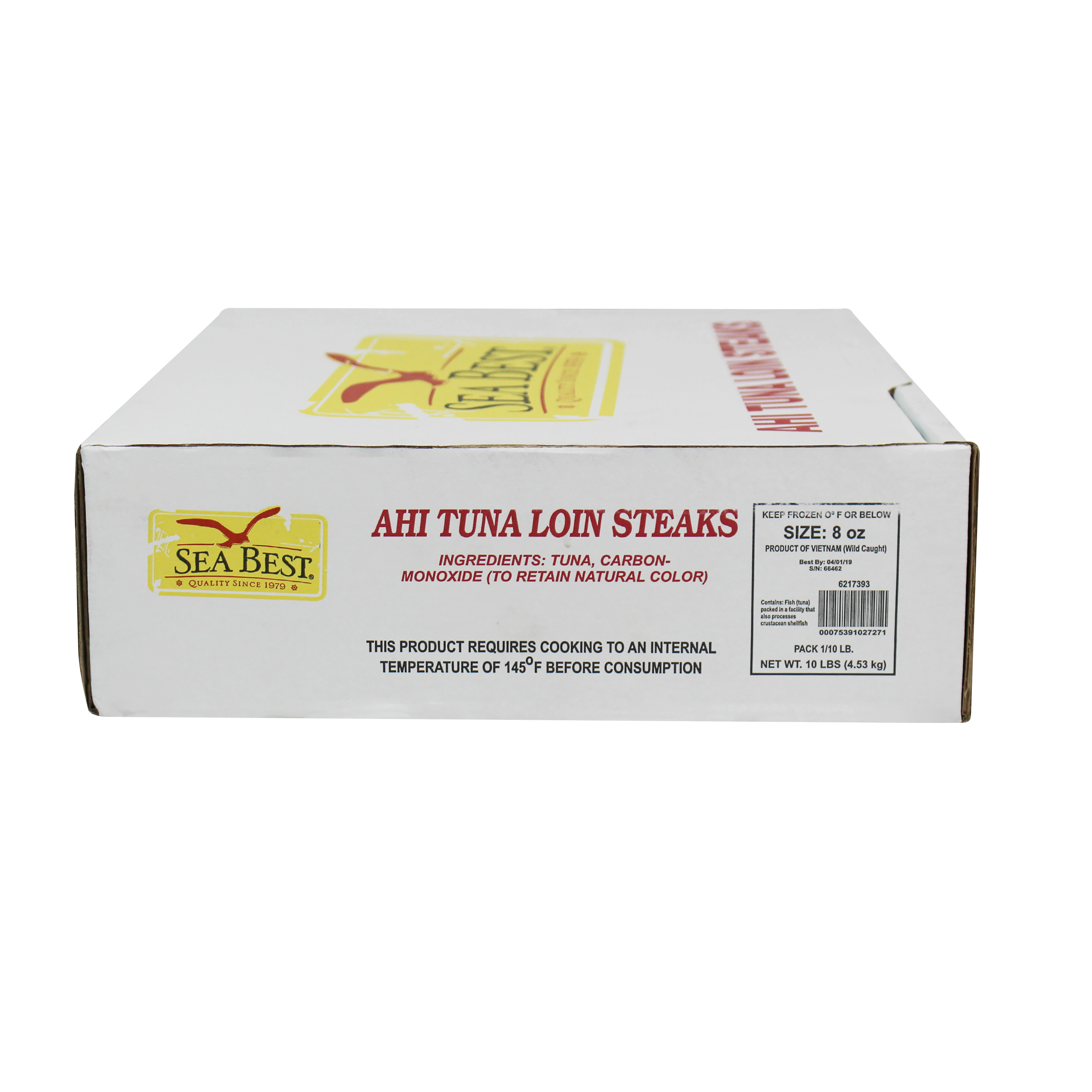 Sea Best Ahi Tuna Steaks are processed from the highest quality AA+ grade or above yellowfin tuna that is responsibly wild caught by long-line or handline method to eliminate bycatch. These skinless, boneless tuna steaks are cut from the eye of the loin and are treated with tasteless wood smoke to retain the natural, bright red color. Tuna has a robust flavor and a firm, tender texture that is enjoyable with minimal flavor enhancement. The tuna steaks are individually vacuum packed and frozen for optimal freshness and convenience.