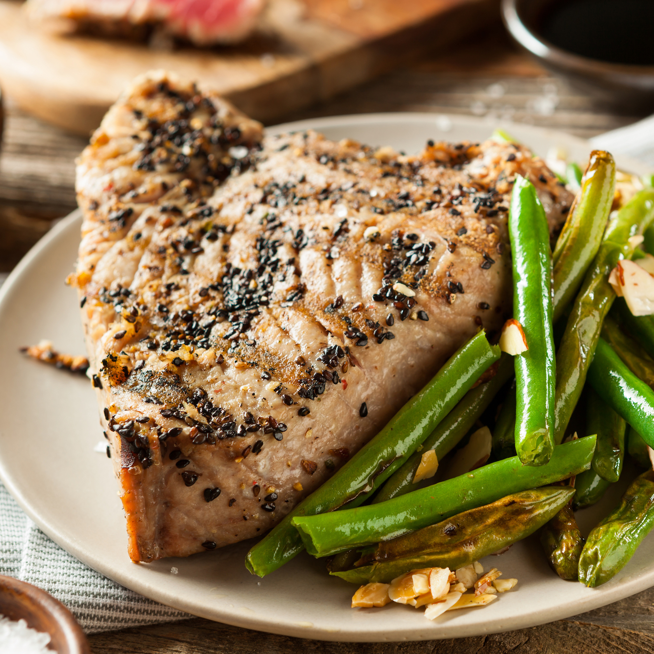 TUNA AHI 8 OUNCE STEAK SKINLESS BONELESS INDIVIDUAL VACUUM PACK TASTLESS SMOKE ENHANCED