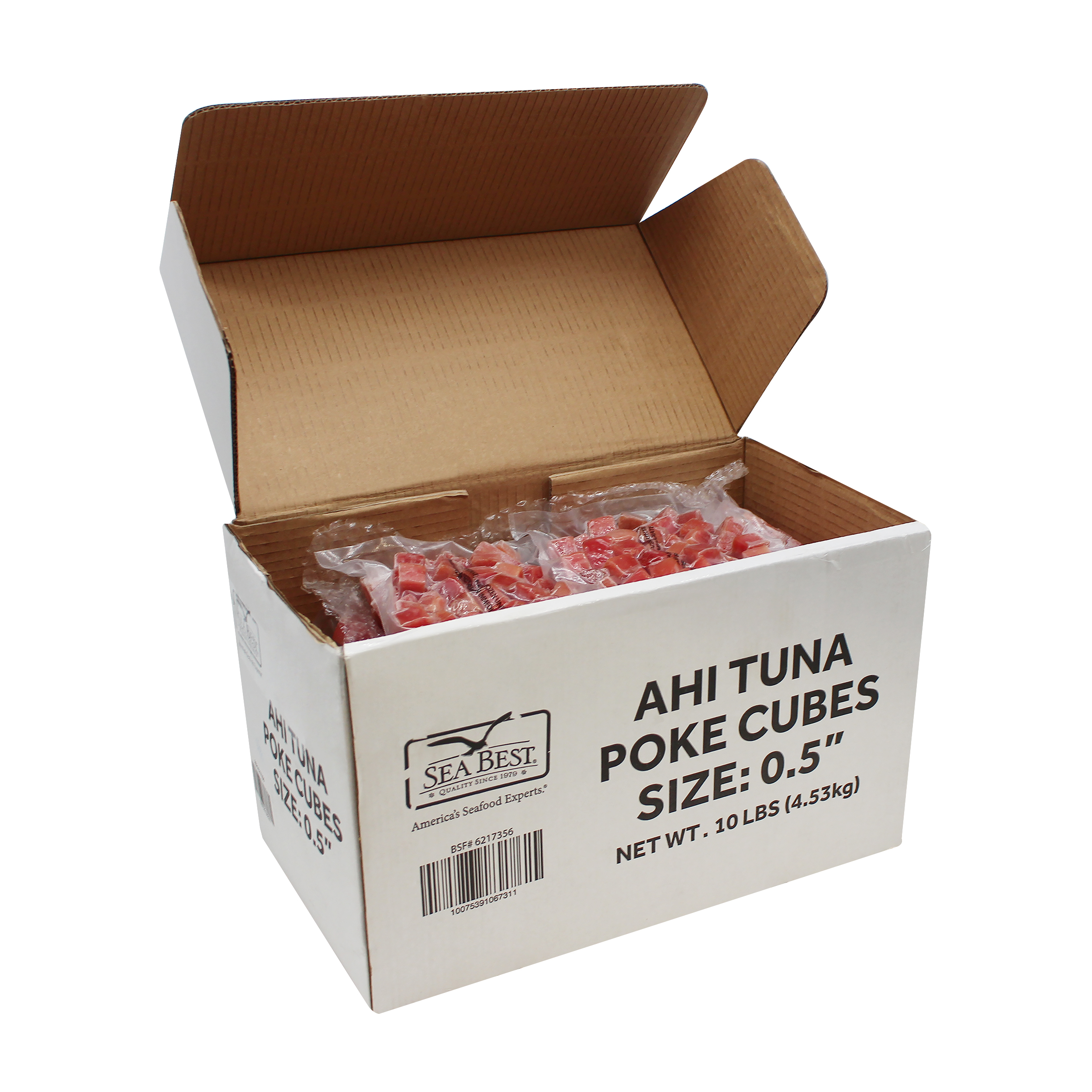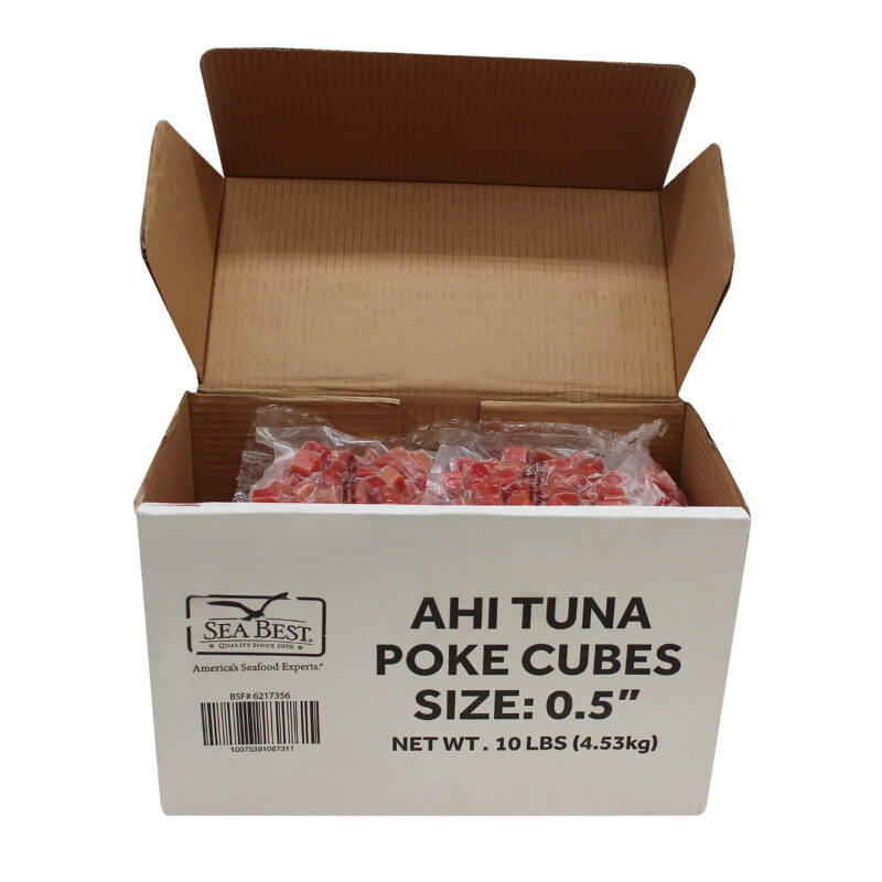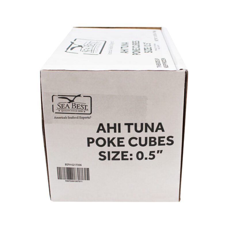 Sea Best Ahi Tuna Poke Cubes are produced from AA Grade highest quality wild caught yellowfin tuna. To ensure consistency in size and thickness, the cubes are cut from the center of the loin with the bloodline removed. Sea Best Ahi Tuna Poke Cubes have a medium, mild flavor with a very firm texture and are minimally CO-enhanced to retain its natural bright red color. The cubes are vacuum packed and frozen for optimal freshness and convenience.